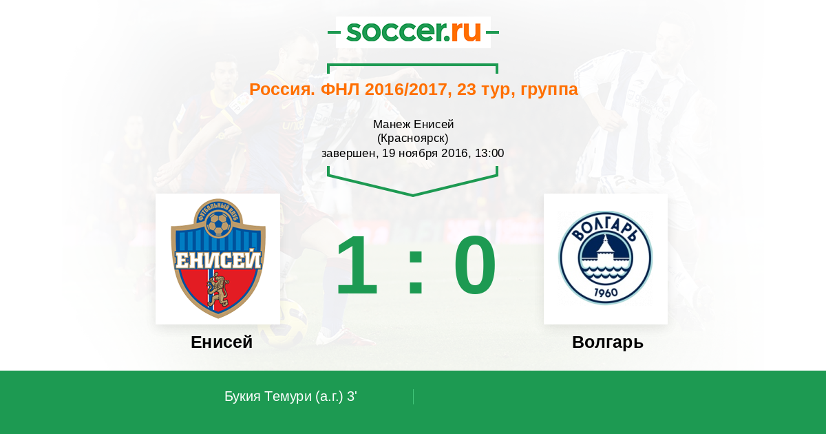 Енисей - Волгарь: обзор матча 19 ноября 2016