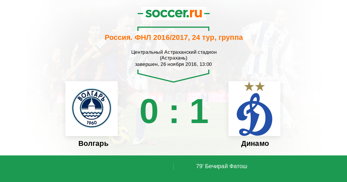 "Динамо" на мажорной ноте завершает непростой 2016-й год, одержав гостевую победу над "Волгарем". Единственный гол провел вышедший на замену Фатош Бечирай. Предлагаем Вам выбрать лучших игроков в составах обеих команд. Спасибо за внимание и до новых встреч на "Соккер.ру"!