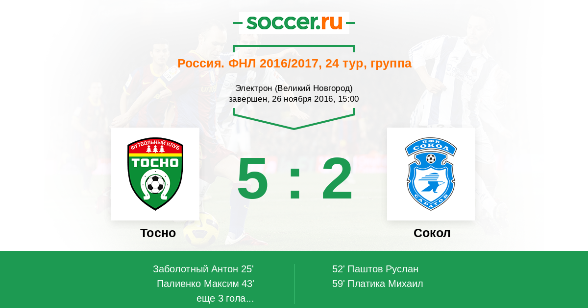 Тосно - Сокол: обзор матча 26 ноября 2016