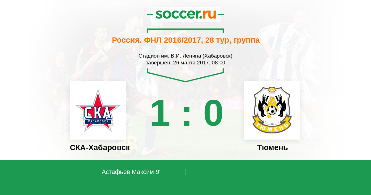 СКА-Хабаровск - Тюмень: обзор матча 26 марта 2017
