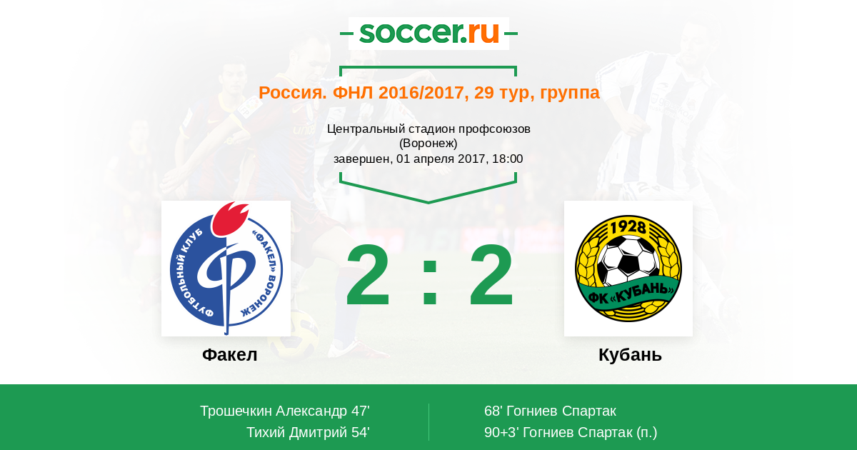 Факел - Кубань: обзор матча 1 апреля 2017