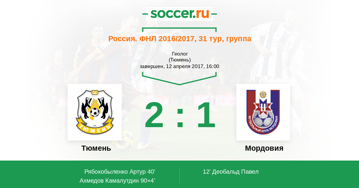 Тюмень - Мордовия: обзор матча 12 апреля 2017