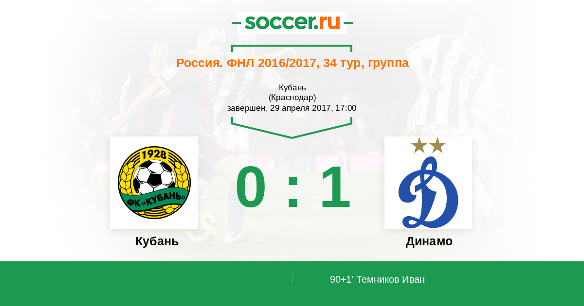 Здравствуйте, уважаемые любители футбола! Мы рады представить текстовый онлайн матча 34-го тура ФНЛ между "Кубанью" и московским "Динамо".
