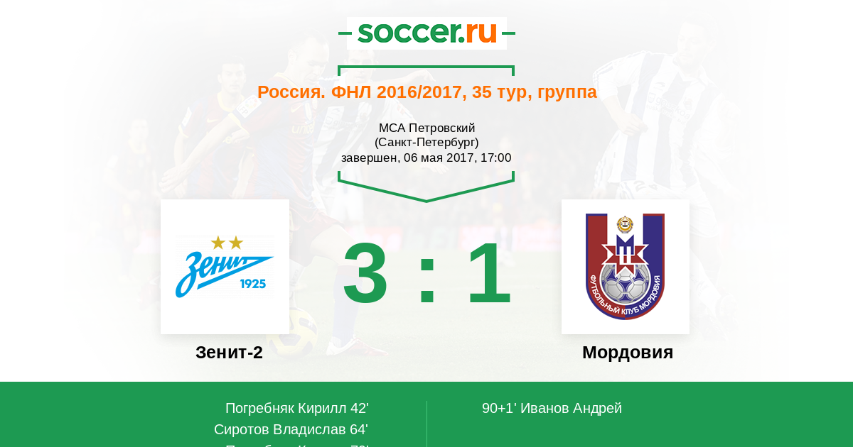 Зенит-2 - Мордовия: обзор матча 6 мая 2017