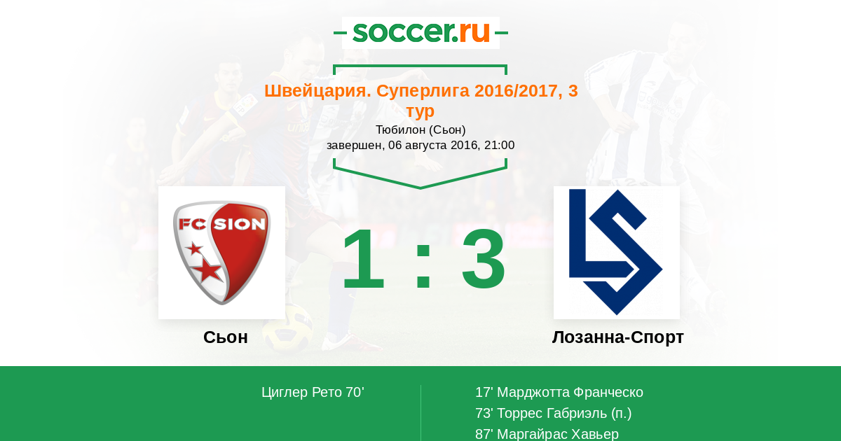 Сьон - Лозанна-Спорт: обзор матча 6 августа 2016