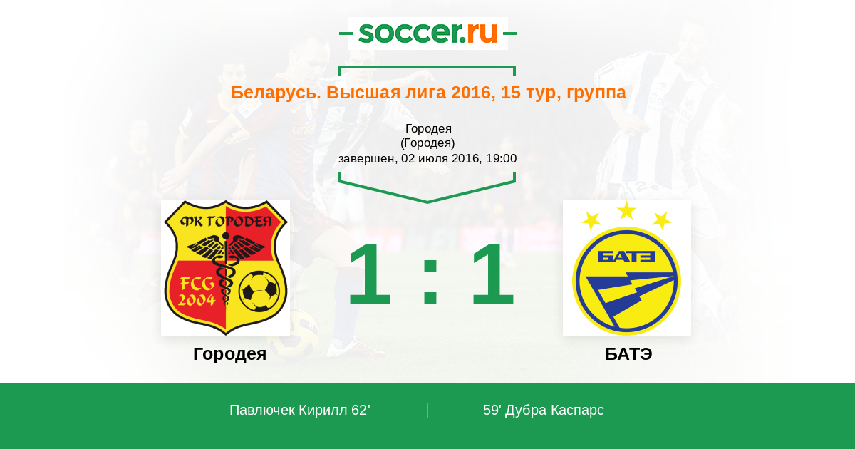 Городея - БАТЭ: обзор матча 2 июля 2016
