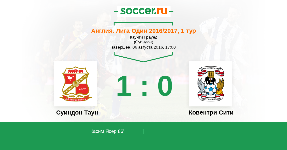 Суиндон Таун - Ковентри Сити: обзор матча 6 августа 2016