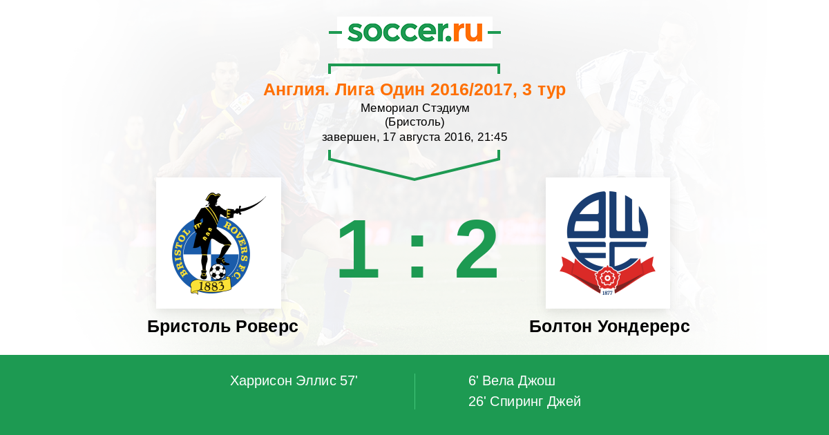 Бристоль Роверс - Болтон Уондерерс: обзор матча 17 августа 2016
