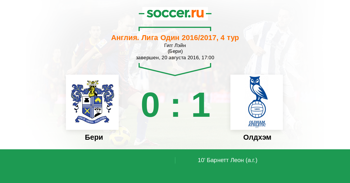 Бери - Олдхэм: обзор матча 20 августа 2016