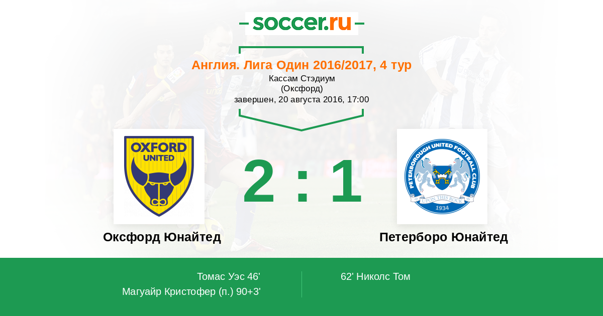 Оксфорд Юнайтед - Петерборо Юнайтед: обзор матча 20 августа 2016