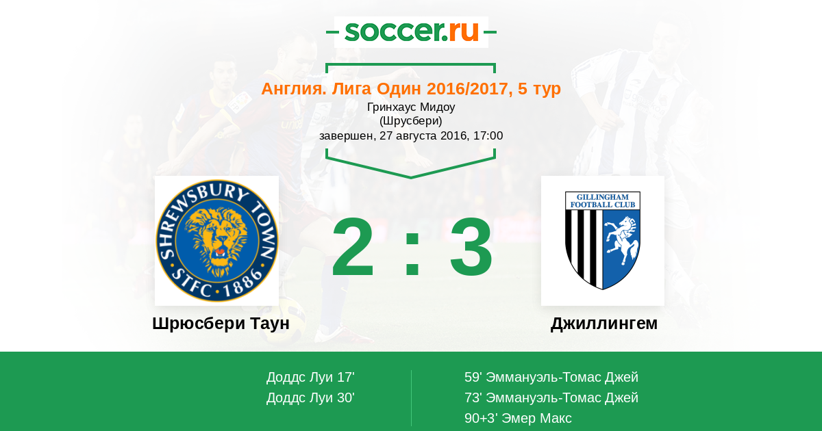 Шрюсбери Таун - Джиллингем: обзор матча 27 августа 2016