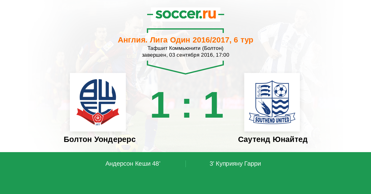 Болтон Уондерерс - Саутенд Юнайтед: обзор матча 3 сентября 2016