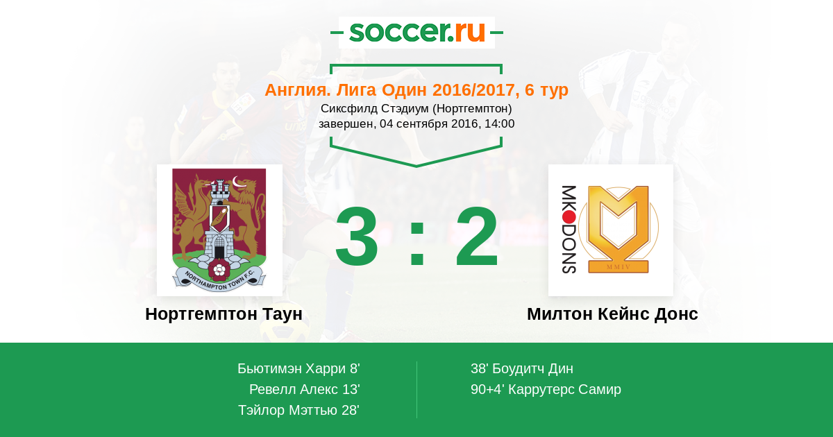 Нортгемптон Таун - Милтон Кейнс Донс: обзор матча 4 сентября 2016
