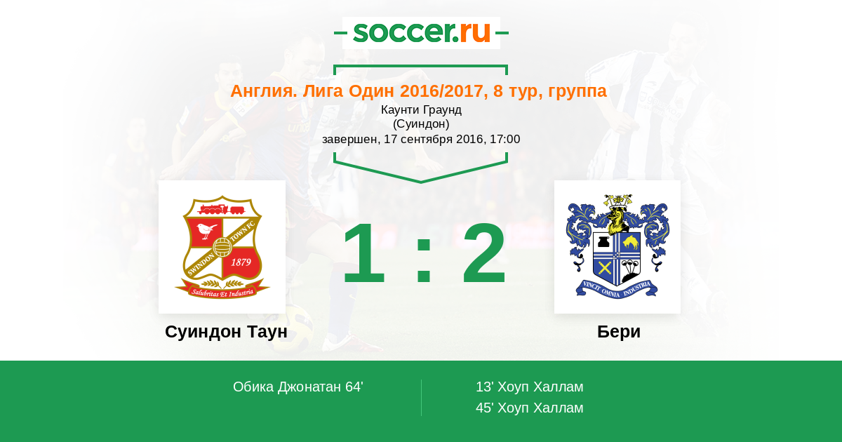 Суиндон Таун - Бери: обзор матча 17 сентября 2016