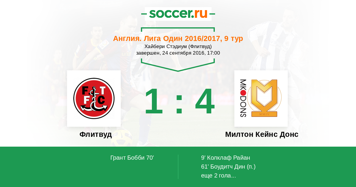 Флитвуд - Милтон Кейнс Донс: обзор матча 24 сентября 2016
