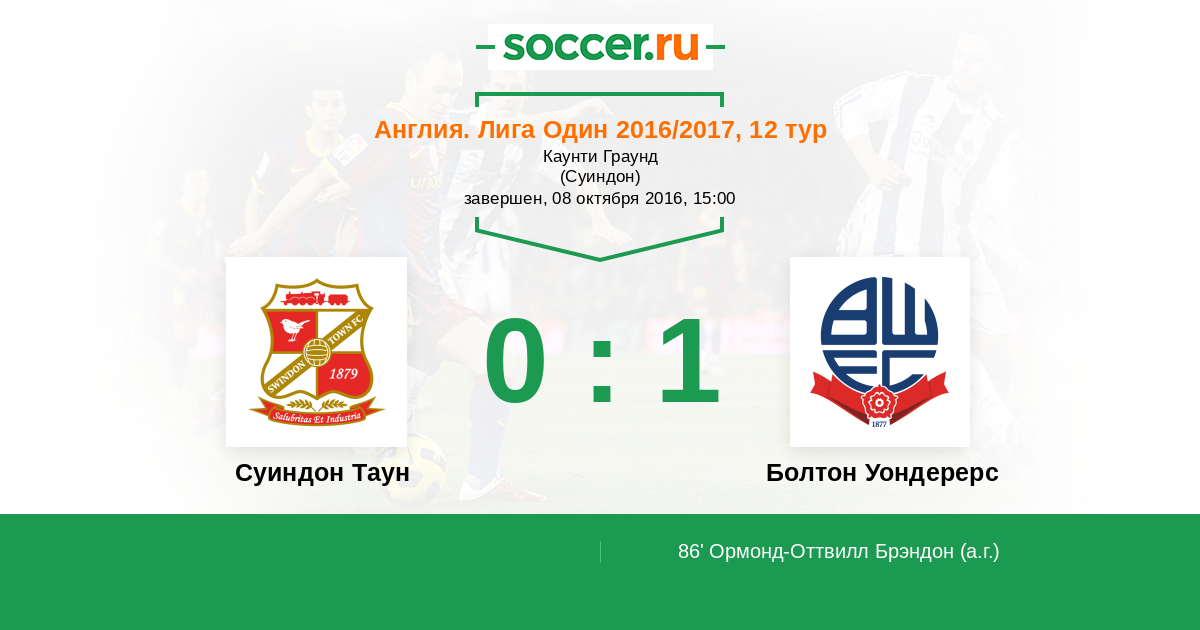 Суиндон Таун - Болтон Уондерерс: обзор матча 8 октября 2016