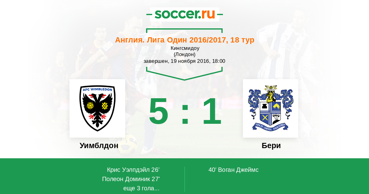 Уимблдон - Бери: обзор матча 19 ноября 2016