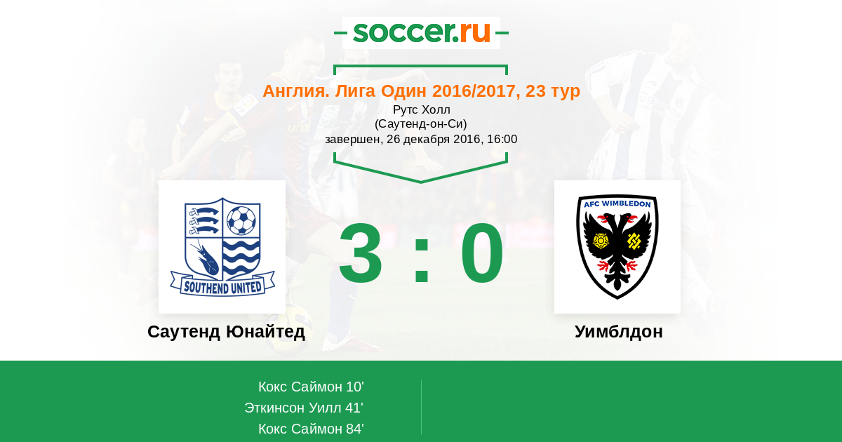 Саутенд Юнайтед - Уимблдон: обзор матча 26 декабря 2016