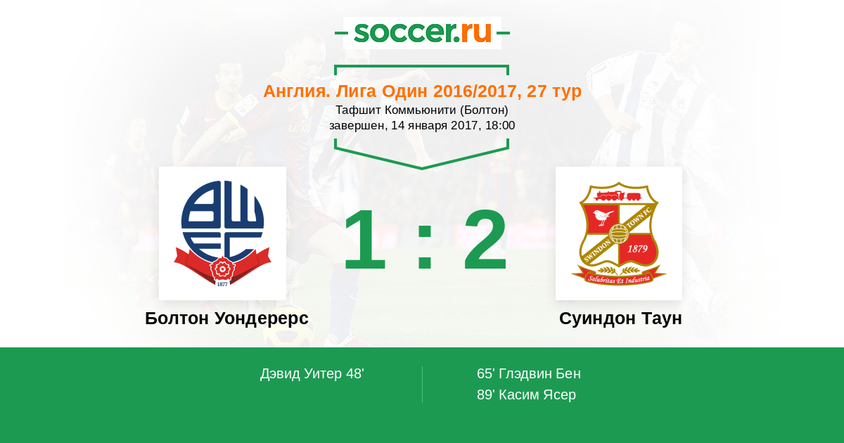 Болтон Уондерерс - Суиндон Таун: обзор матча 14 января 2017