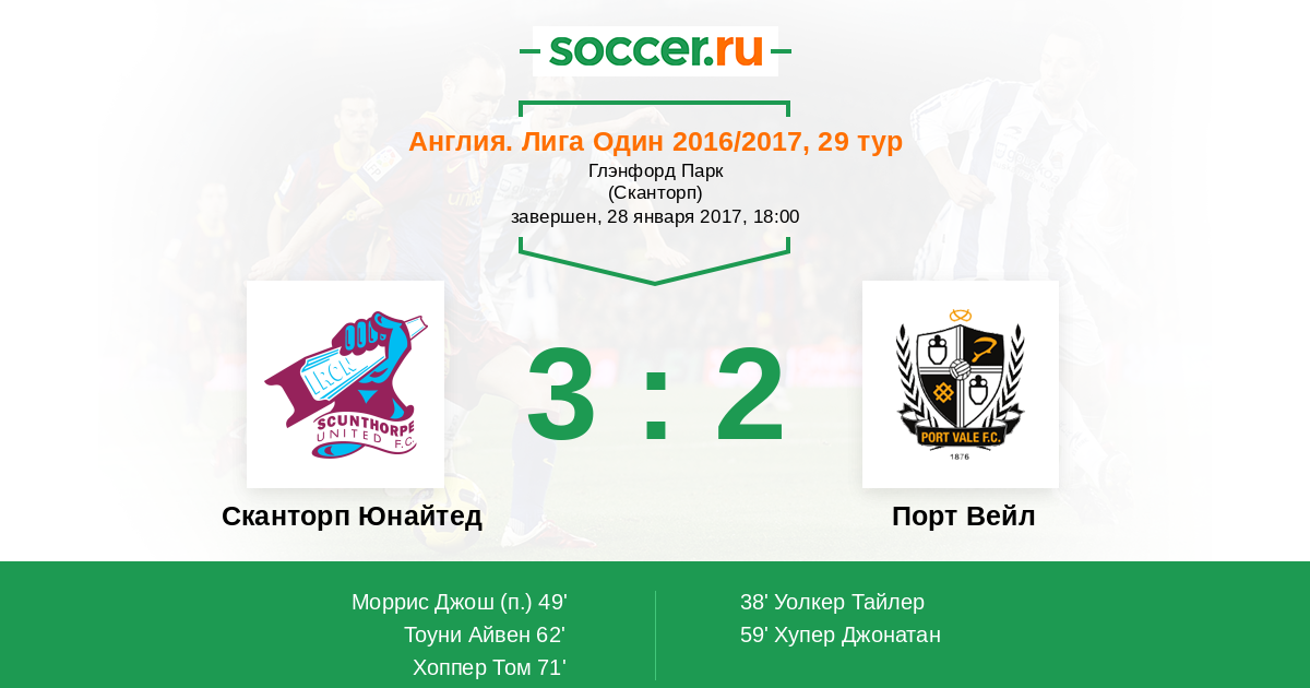 Сканторп Юнайтед - Порт Вейл: обзор матча 28 января 2017