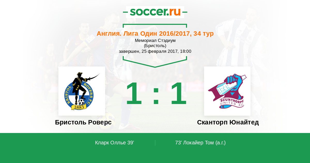 Бристоль Роверс - Сканторп Юнайтед: обзор матча 25 февраля 2017