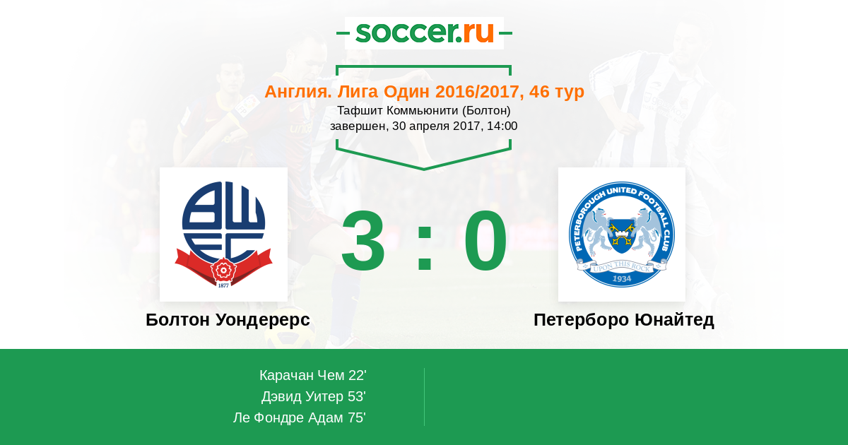 Болтон Уондерерс - Петерборо Юнайтед: обзор матча 30 апреля 2017
