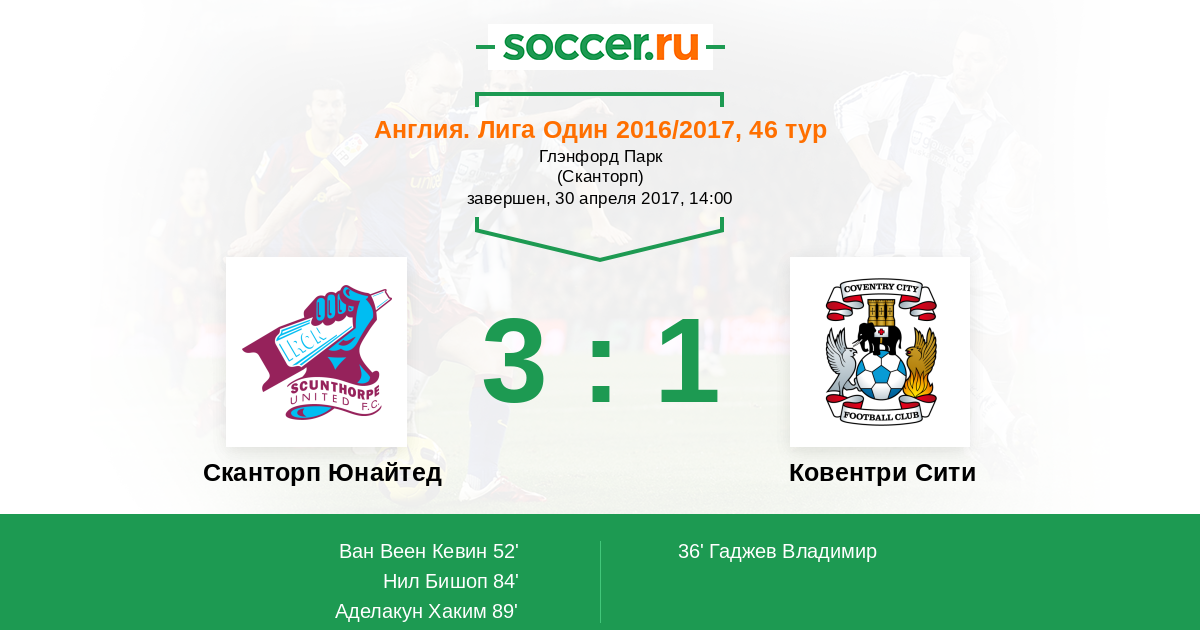 Сканторп Юнайтед - Ковентри Сити: обзор матча 30 апреля 2017
