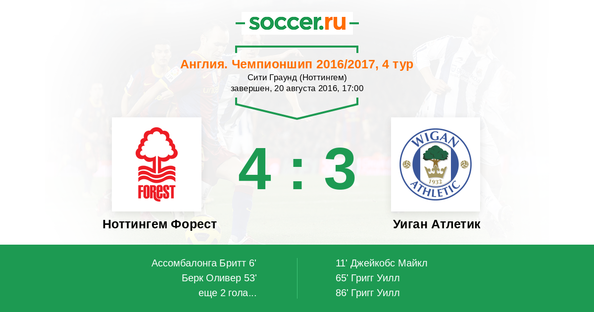 Ноттингем Форест - Уиган Атлетик: обзор матча 20 августа 2016