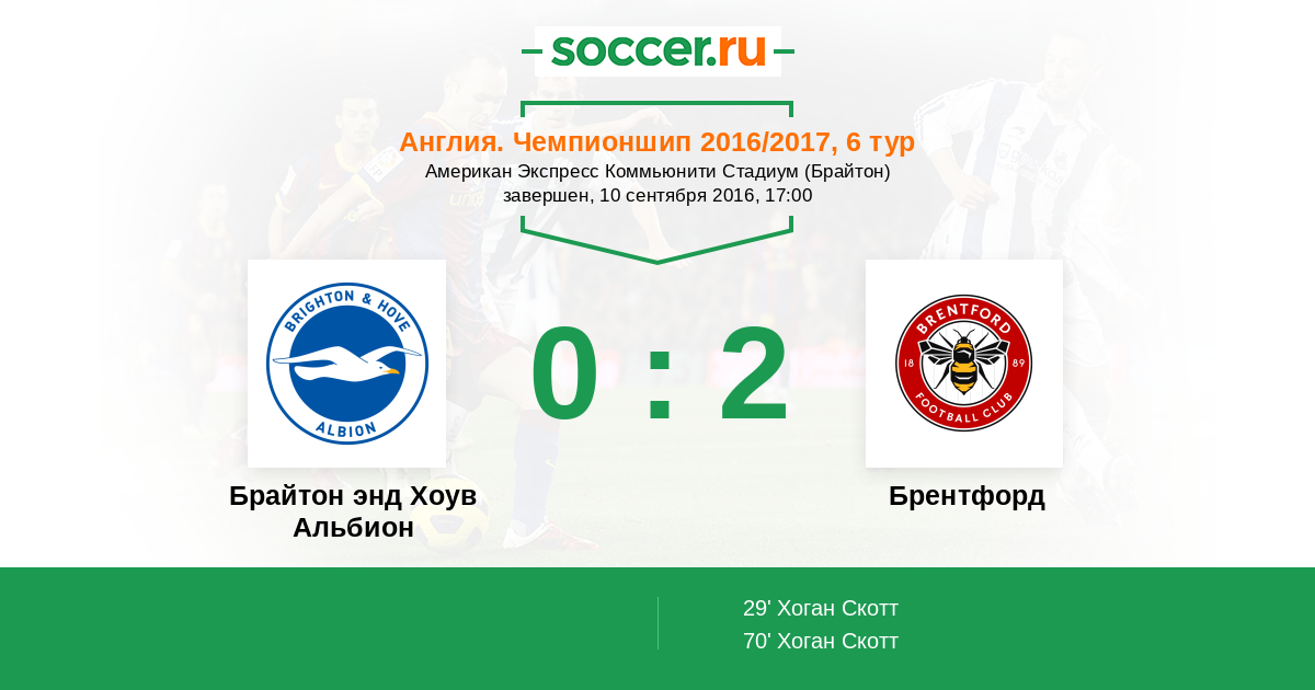 Брайтон энд Хоув Альбион - Брентфорд: обзор матча 10 сентября 2016