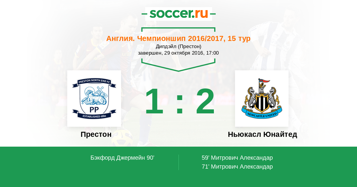 Престон - Ньюкасл Юнайтед: обзор матча 29 октября 2016