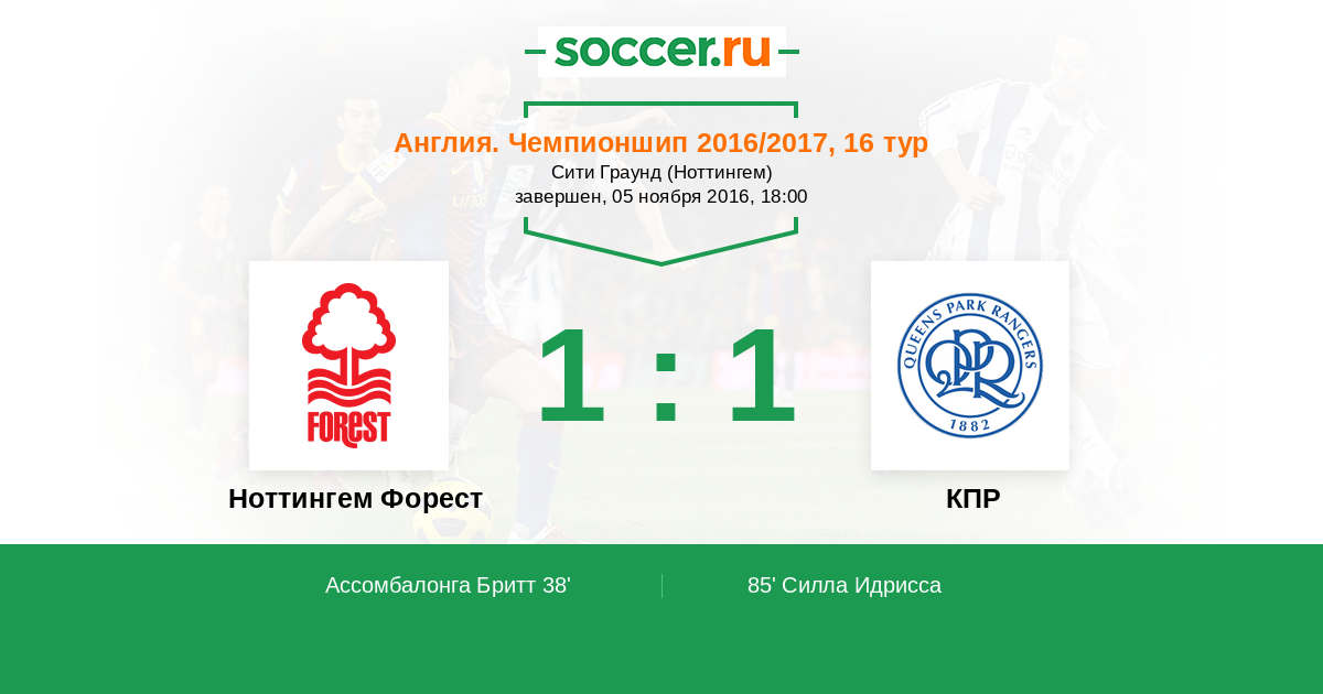 Ноттингем Форест - КПР: обзор матча 5 ноября 2016