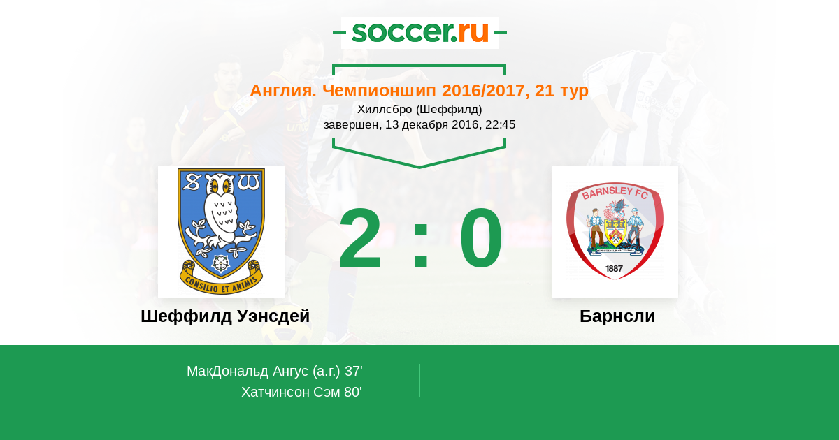 Шеффилд Уэнсдей - Барнсли: обзор матча 13 декабря 2016
