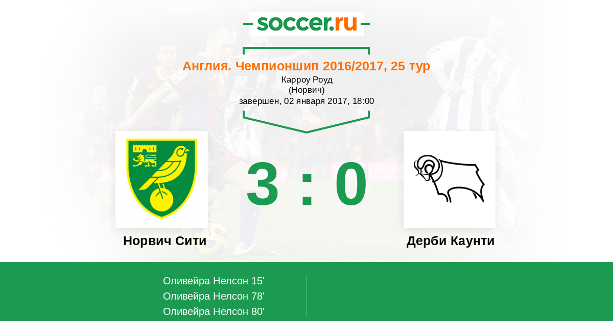 Норвич Сити - Дерби Каунти: обзор матча 2 января 2017