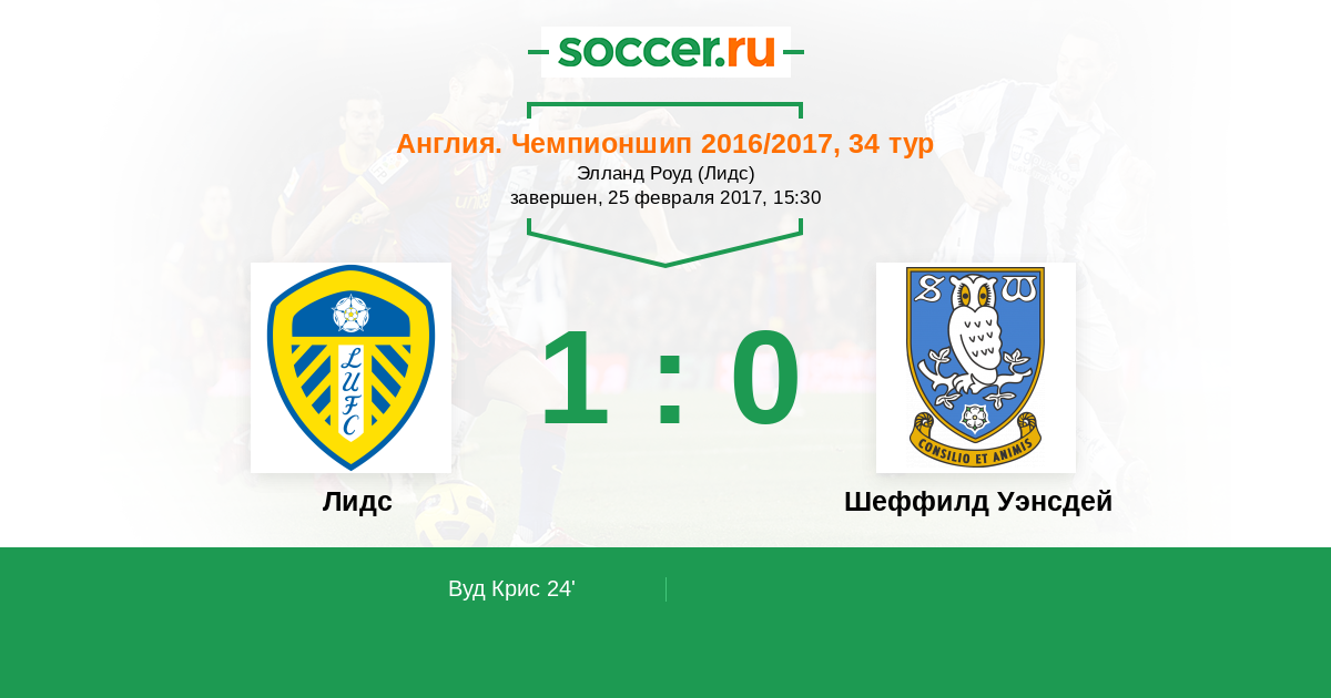 Лидс - Шеффилд Уэнсдей: обзор матча 25 февраля 2017