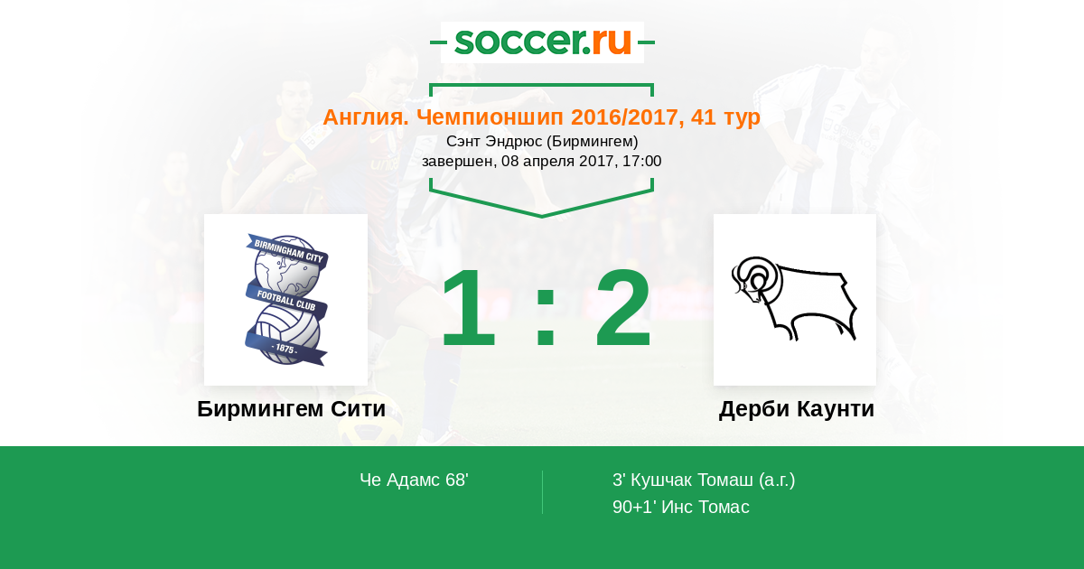 Бирмингем Сити - Дерби Каунти: обзор матча 8 апреля 2017