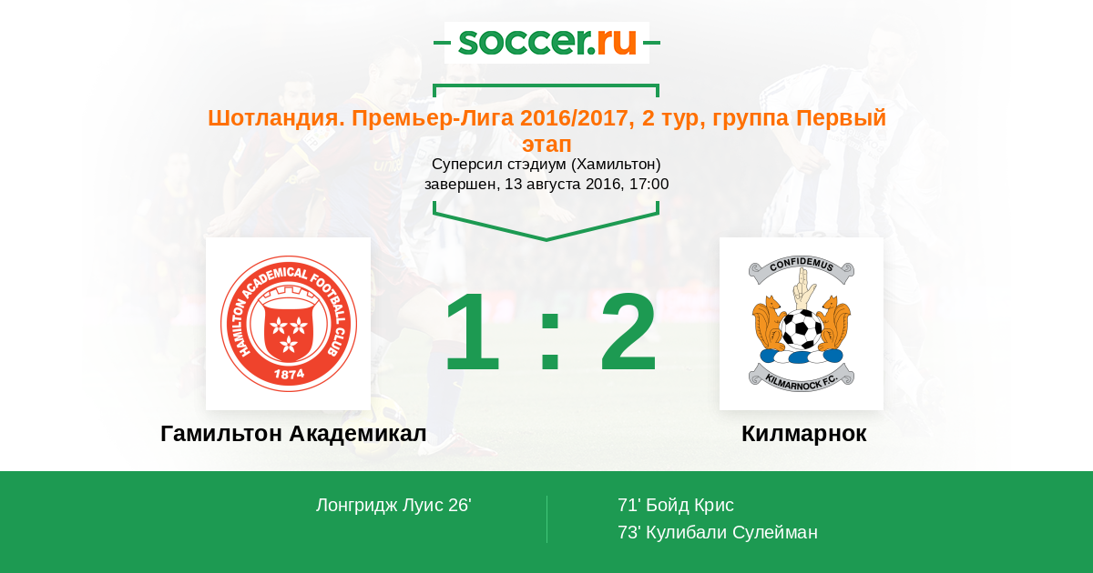 Гамильтон Академикал - Килмарнок: обзор матча 13 августа 2016