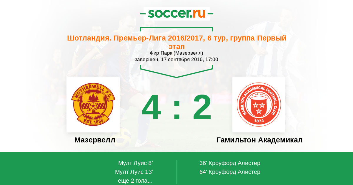 Мазервелл - Гамильтон Академикал: обзор матча 17 сентября 2016