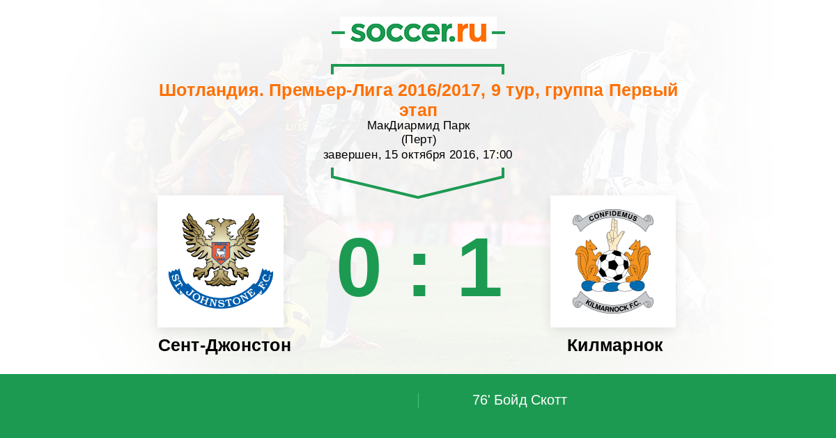 Сент-Джонстон - Килмарнок: обзор матча 15 октября 2016