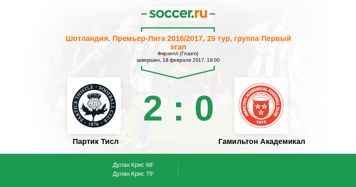 Партик Тисл - Гамильтон Академикал: обзор матча 18 февраля 2017