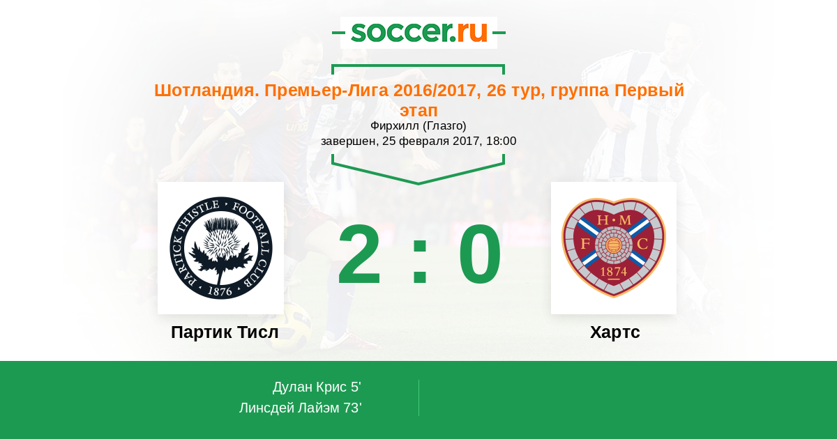 Партик Тисл - Хартс: обзор матча 25 февраля 2017