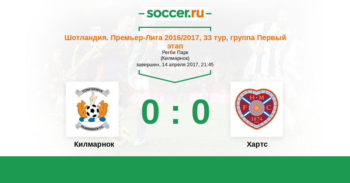 Килмарнок - Хартс: обзор матча 14 апреля 2017