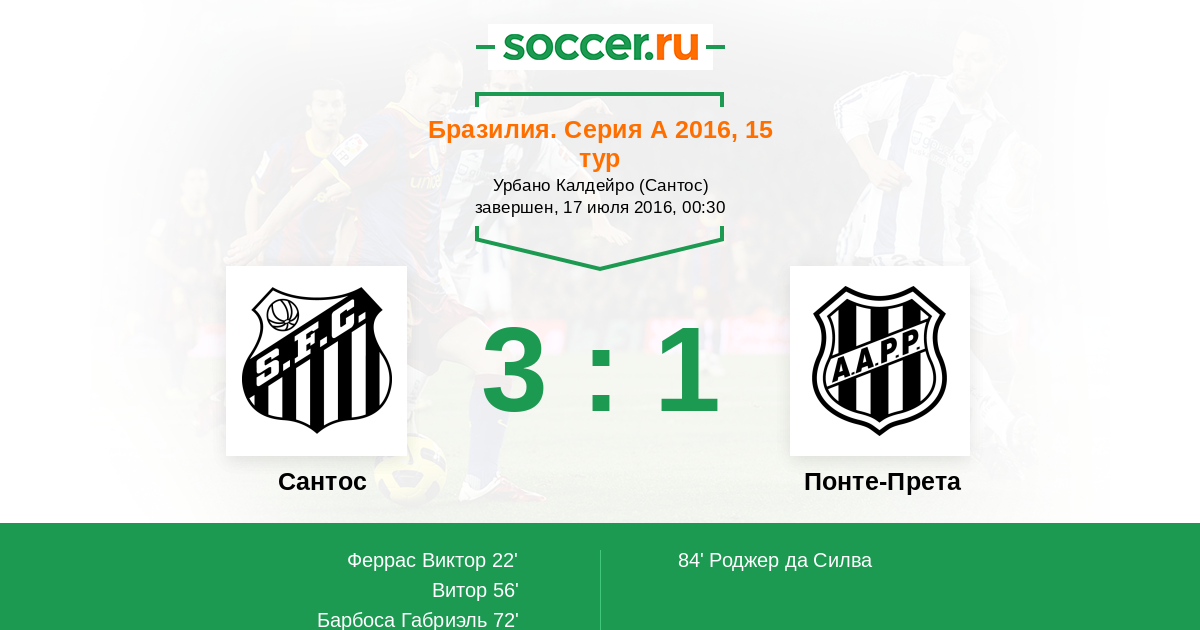 Сантос - Понте-Прета: обзор матча 17 июля 2016