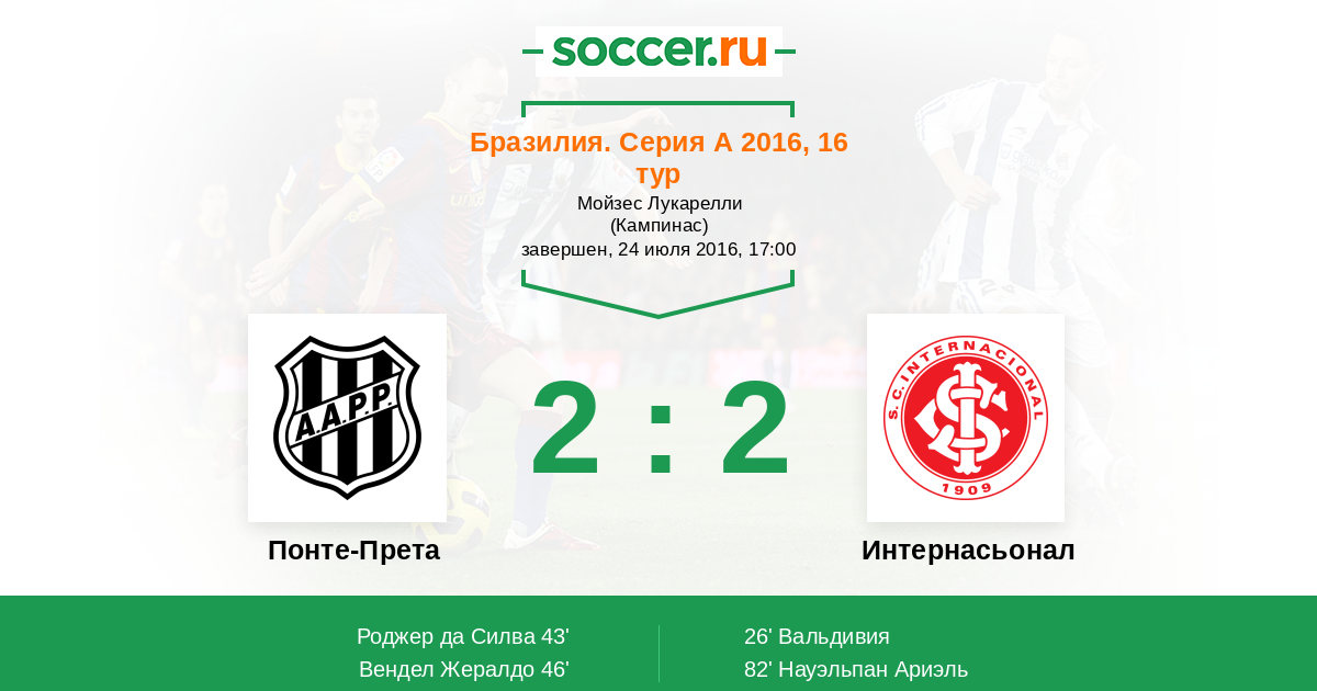 Понте-Прета - Интернасьонал: обзор матча 24 июля 2016