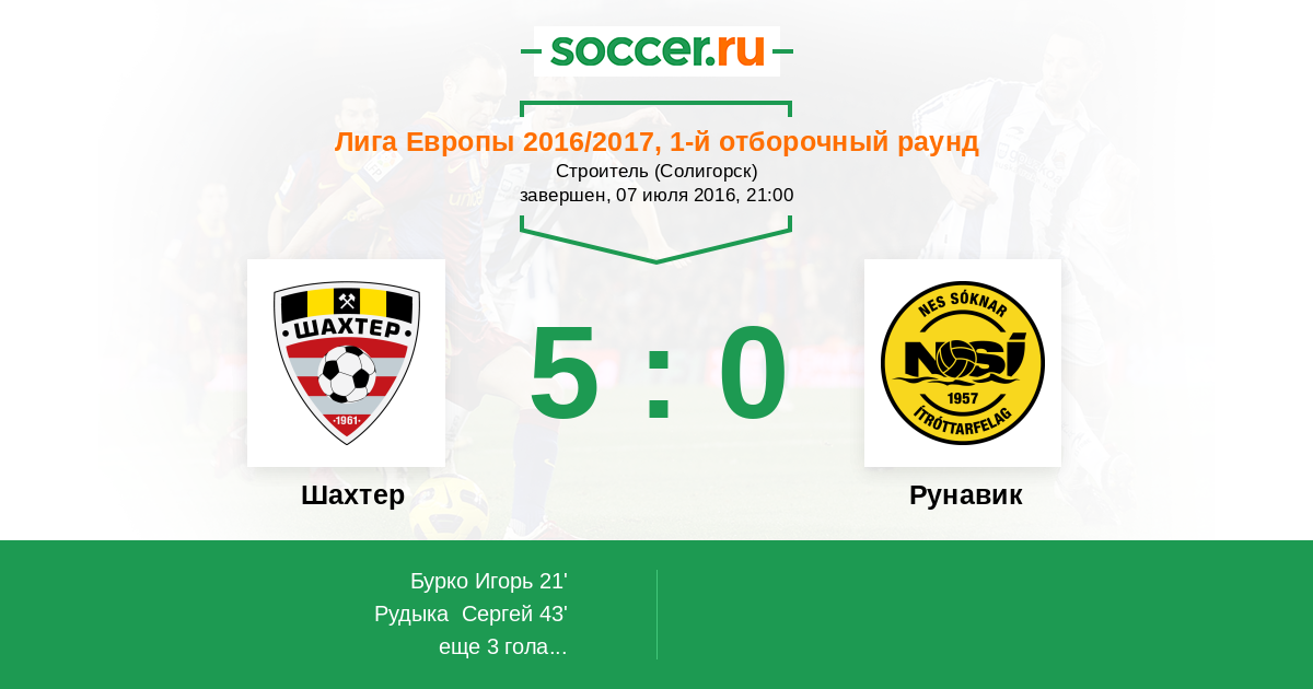 Шахтер - Рунавик: обзор матча 7 июля 2016