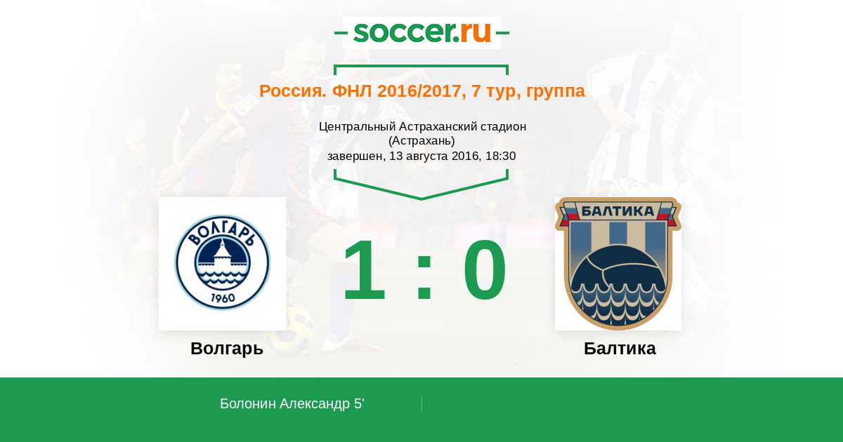 Волгарь - Балтика: обзор матча 13 августа 2016