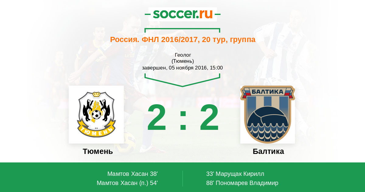 Тюмень - Балтика: обзор матча 5 ноября 2016