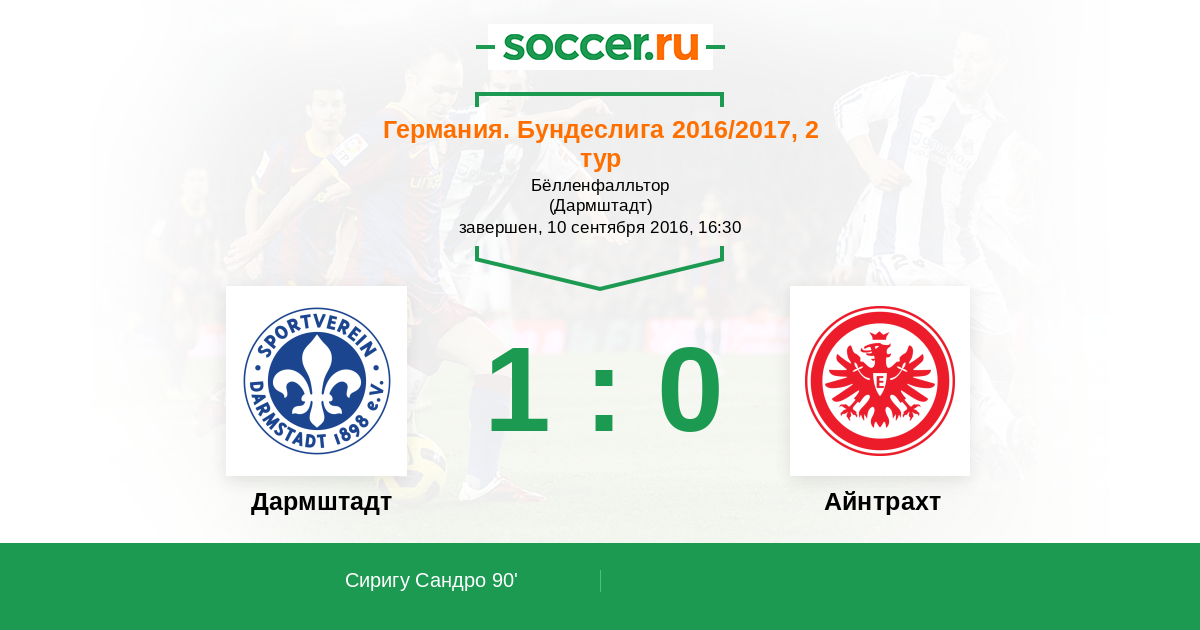 Дармштадт - Айнтрахт: обзор матча 10 сентября 2016