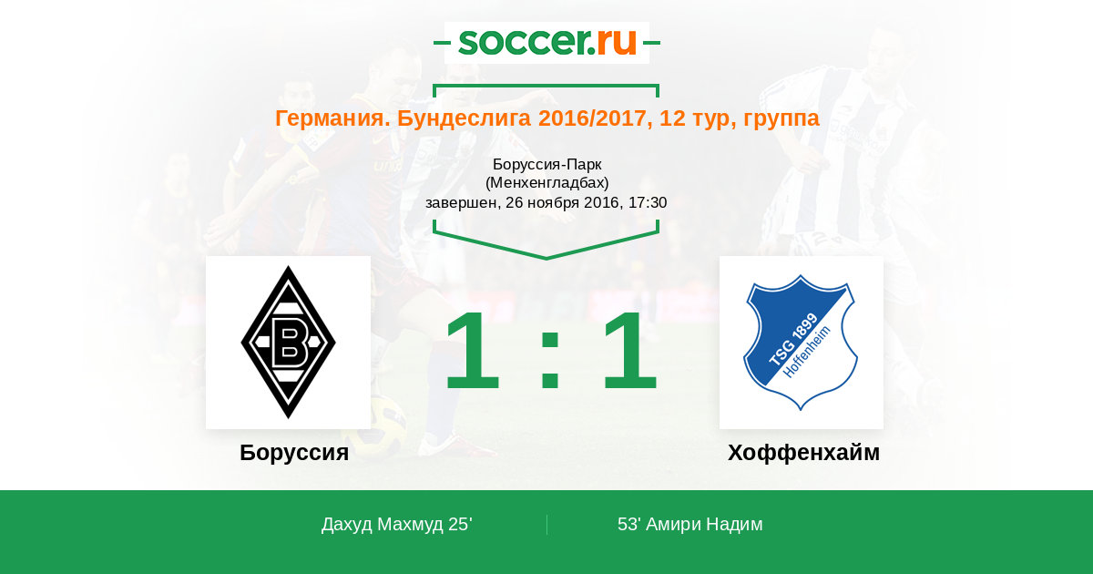 Боруссия - Хоффенхайм: обзор матча 26 ноября 2016