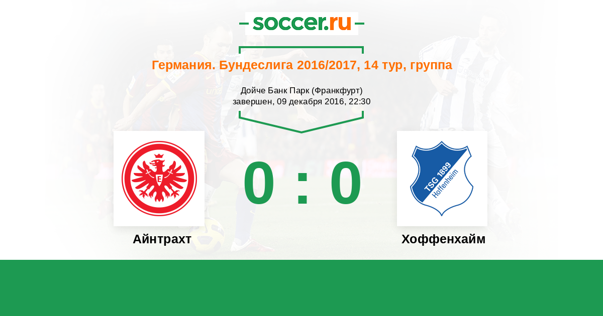 Айнтрахт - Хоффенхайм: обзор матча 9 декабря 2016