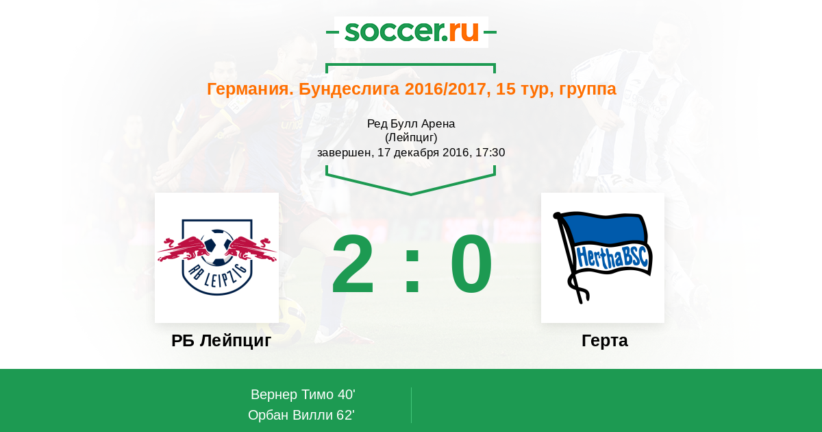 РБ Лейпциг - Герта: обзор матча 17 декабря 2016